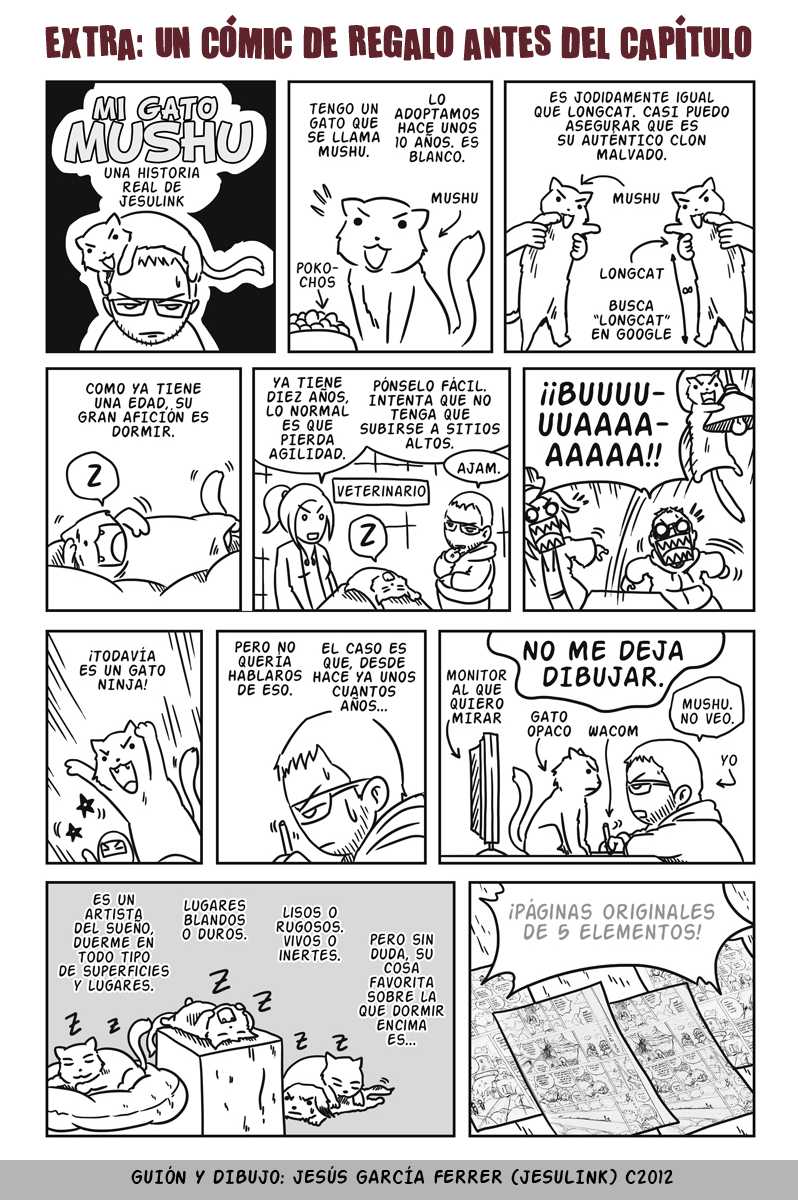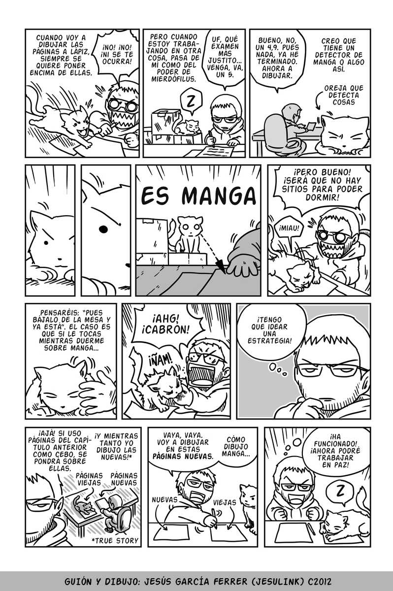 No escribiría esto por aquí si no fuera porque hace cosa de un año publiqué un cómic sobre mi gato Mushu, contando algunas anécdotas que nos sucedían mientras intentaba dibujar (cap. 39 de 5 elementos o Tomo 6). El cómic divirtió a muchísimos lectores, y desde ese momento no son pocos los que nos han preguntado por él en correos electrónicos, en salones, en charlas...