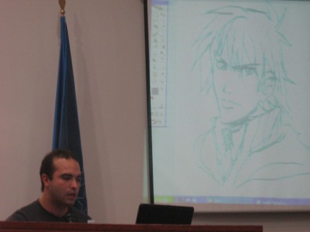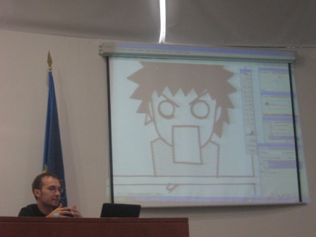 Llegó la tarde y comenzó la conferencia. Javier Bolado y yo, estuvimos hablando un rato, presentados por Carlos, un miembro de la organización. Yo tuve la oportunidad de hablar un poco sobre el nacimiento de Raruto, y cómo evolucionamos hasta crear Jesulink.com. Después me hicieron la típica pregunta de "¿Te tomas algo para inventarte esos chistes?", y pude explicar en bastante detalle mis referencias de humor. Después, en la ronda de preguntas, pude informar a los asistentes sobre los tomos que estamos vendiendo en los stands, el Tigre mal dibujado, que saldrá en Barcelona por primera vez, y sobretodo, de las traducciones Raruteras y los proyectos de los fans.