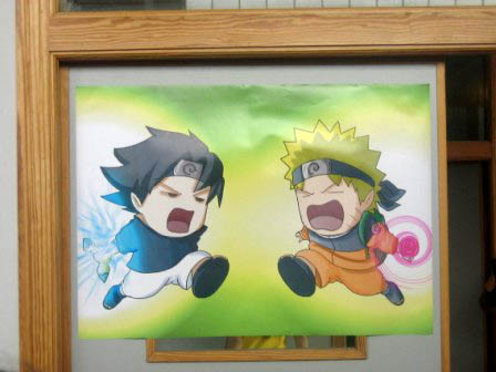 Para que hubiera mís variedad y posibilidad de premio, repartimos también algunos dibujos de Raruto y chapas personalizadas.
